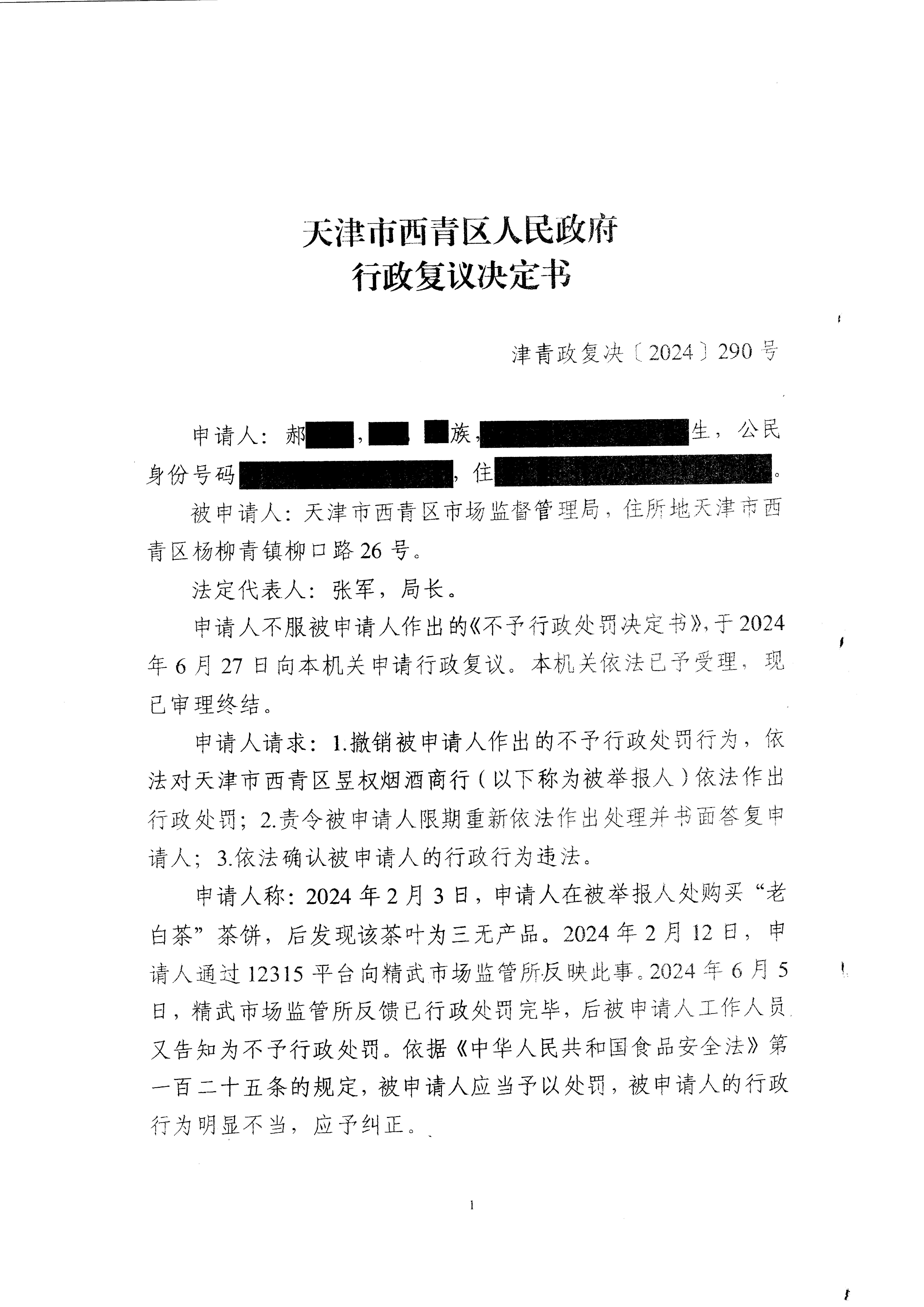 郝某不服在线赌场 市场监管局投诉举报处理行政复议案