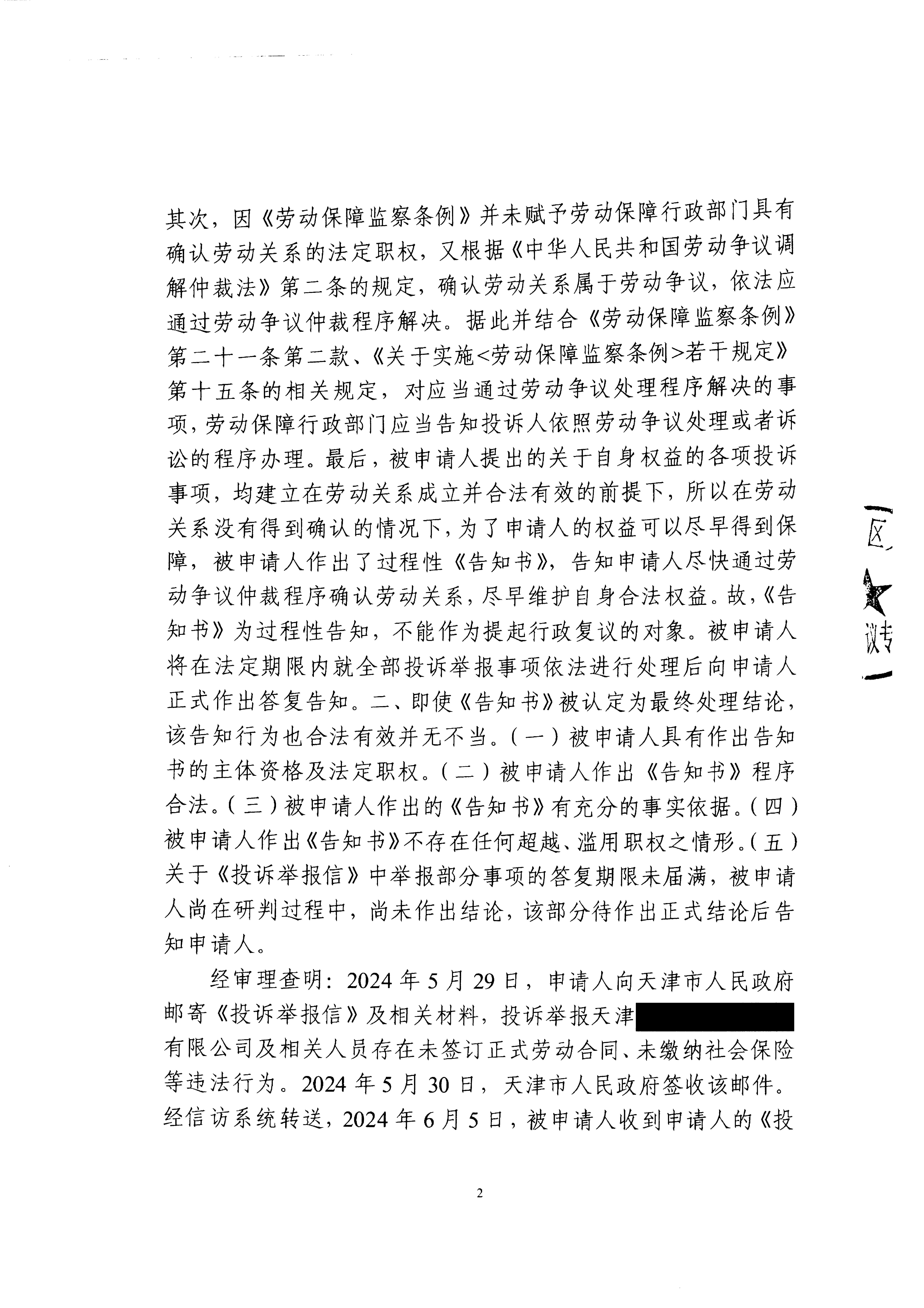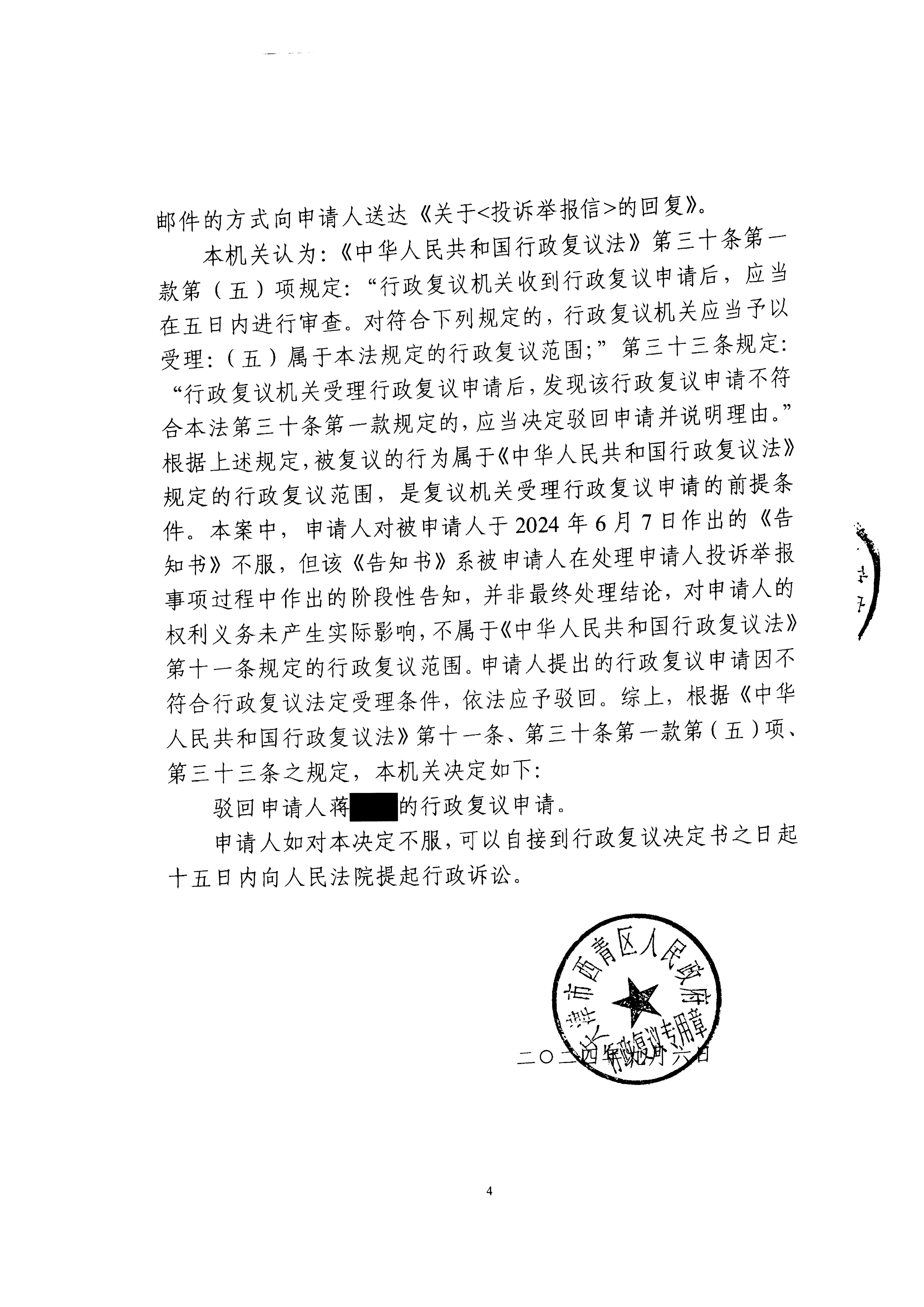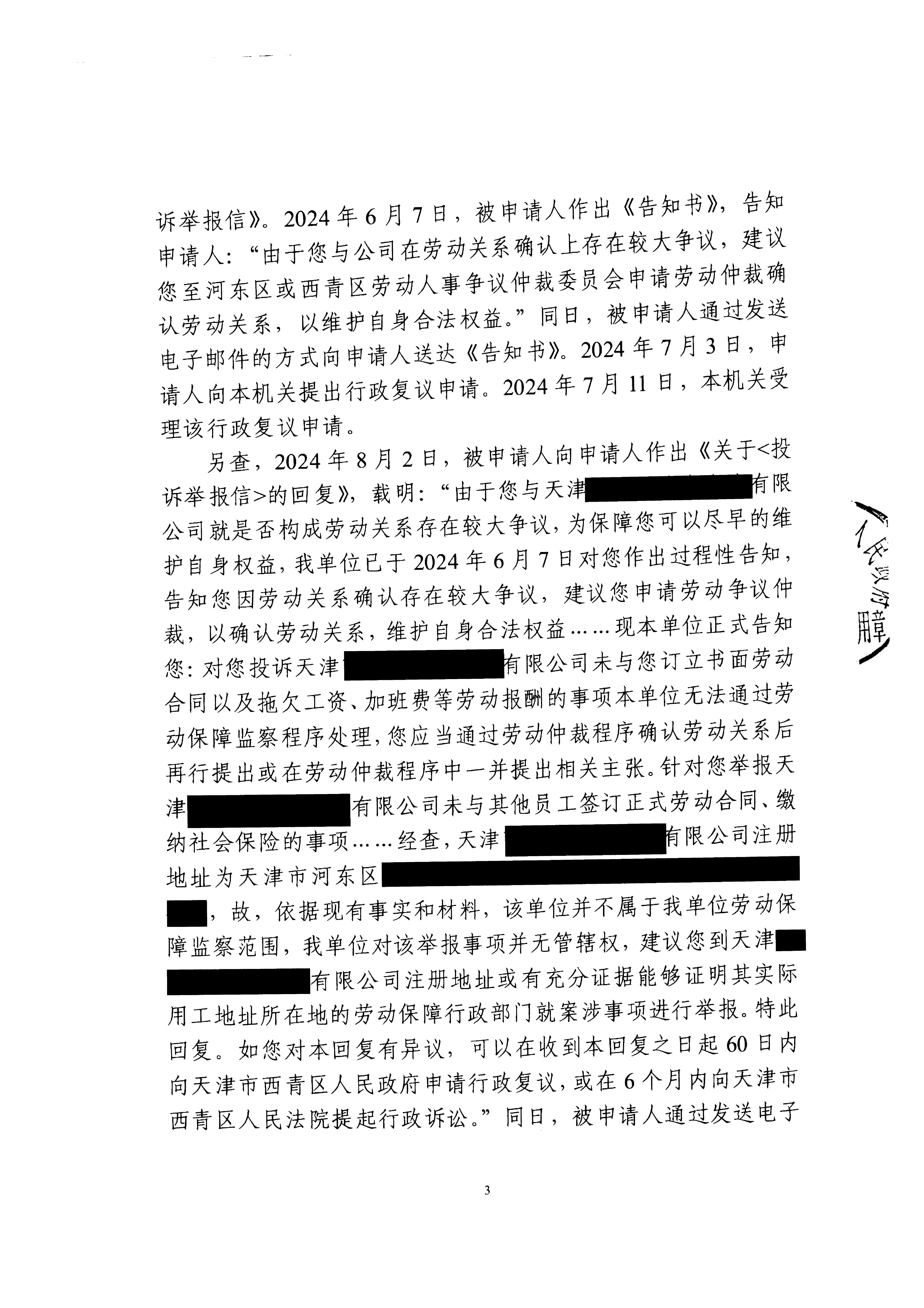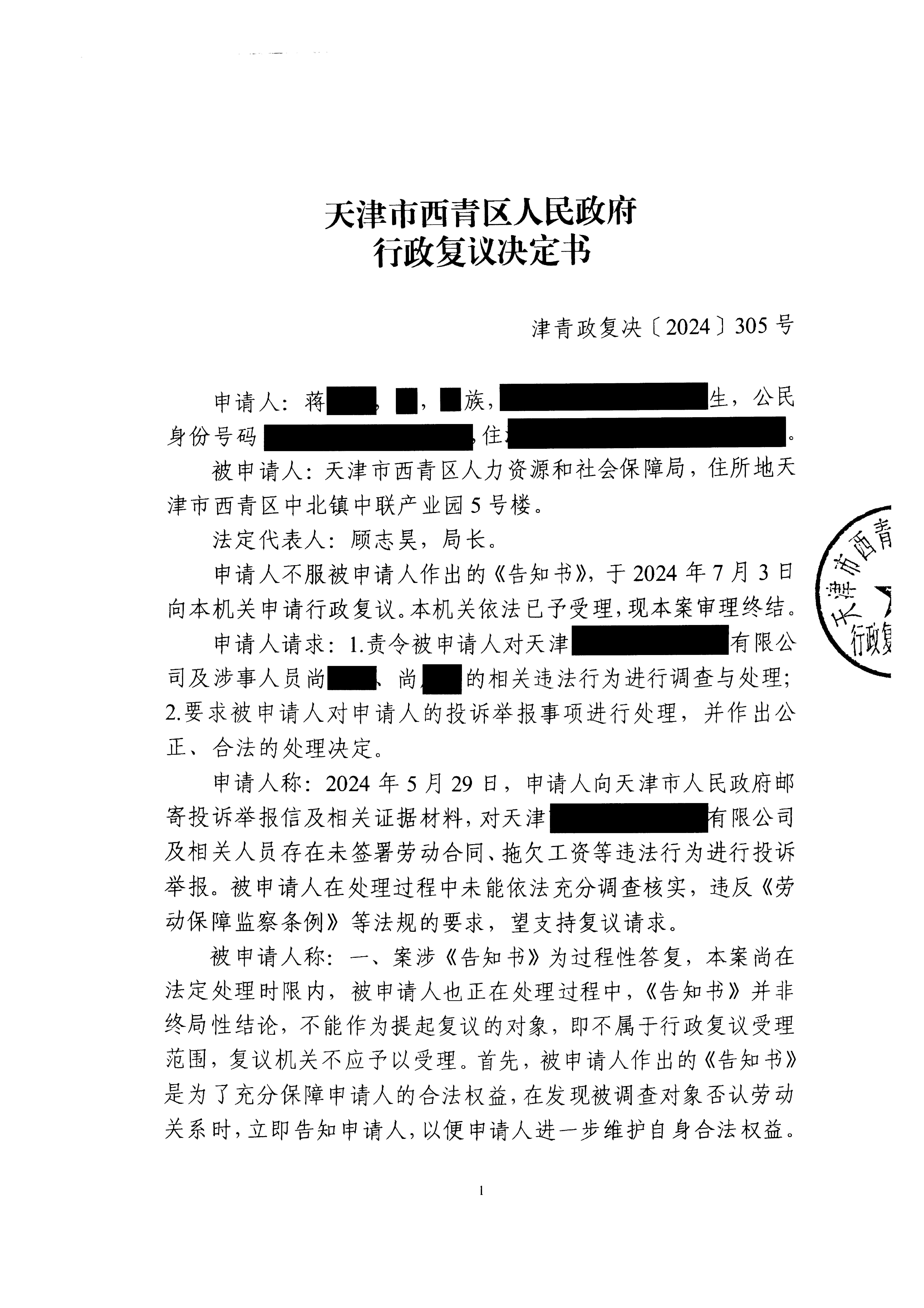 蒋某不服在线赌场 人社局投诉举报处理行政复议案