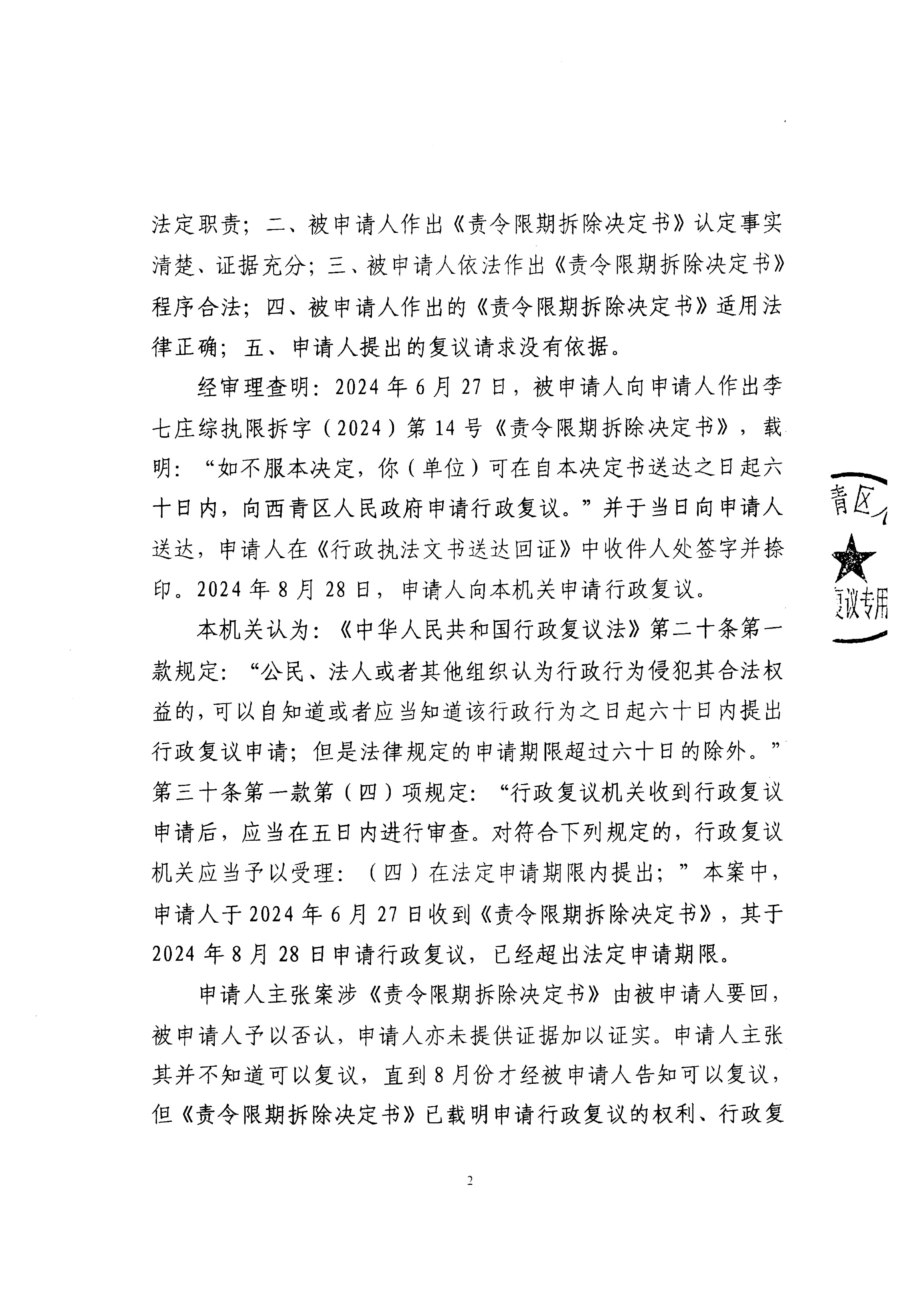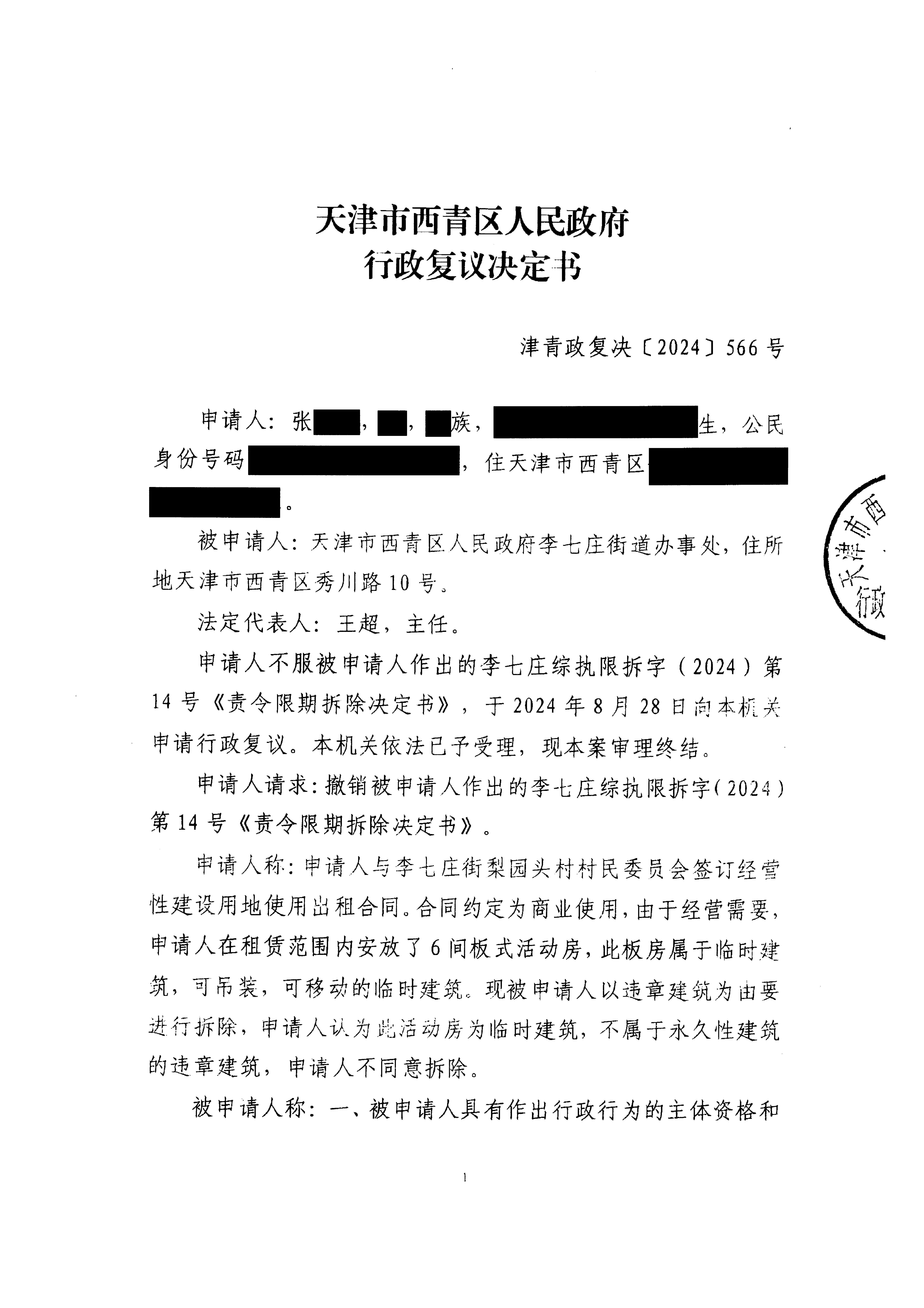 张某不服在线赌场-在线赌场排名 李七庄街道办事处行政强制行政复议案