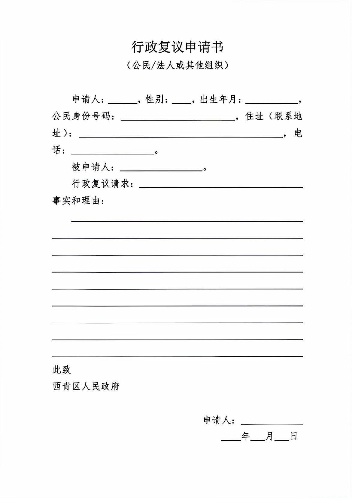 在线赌场 政府行政复议申请书(模板)公开