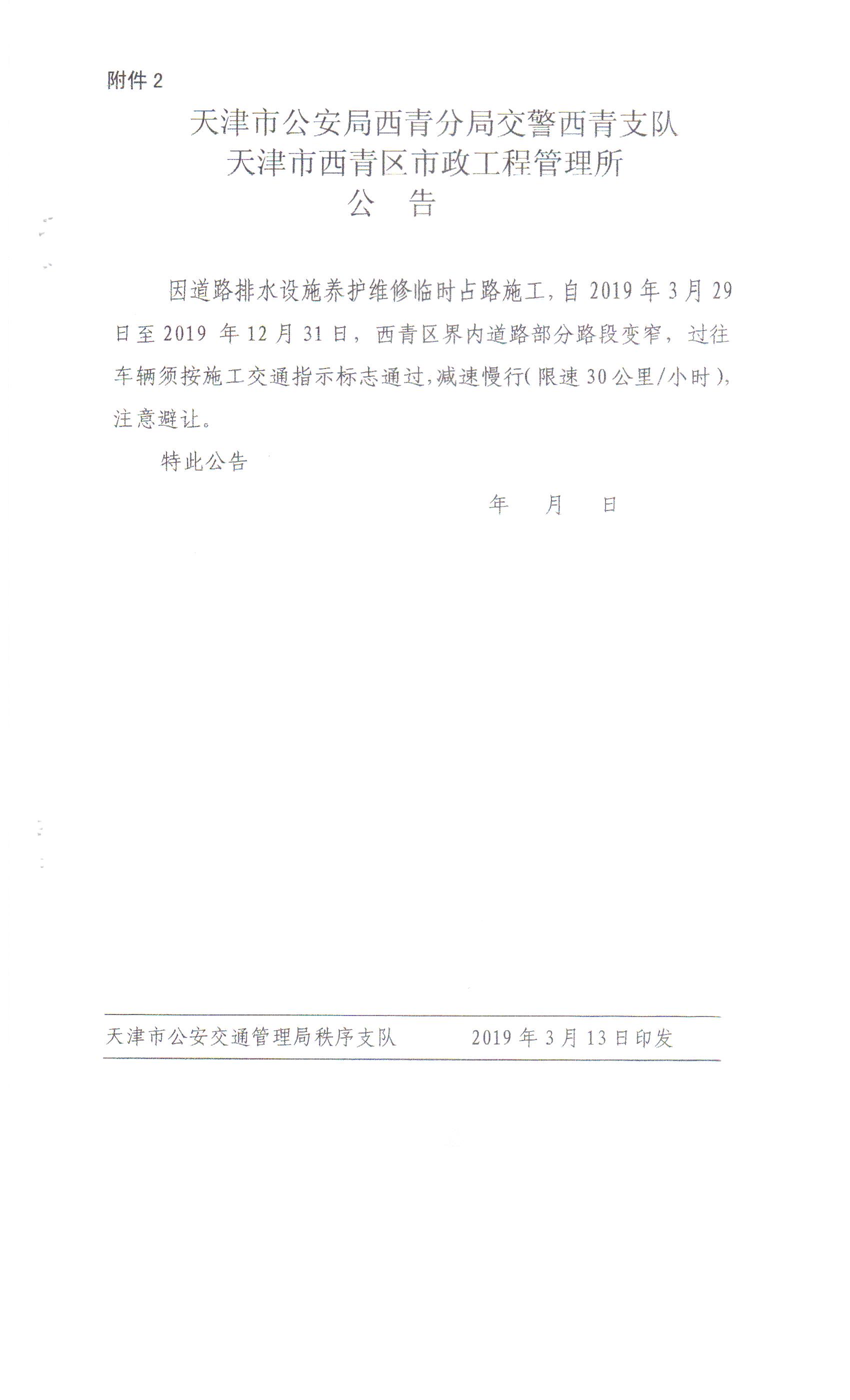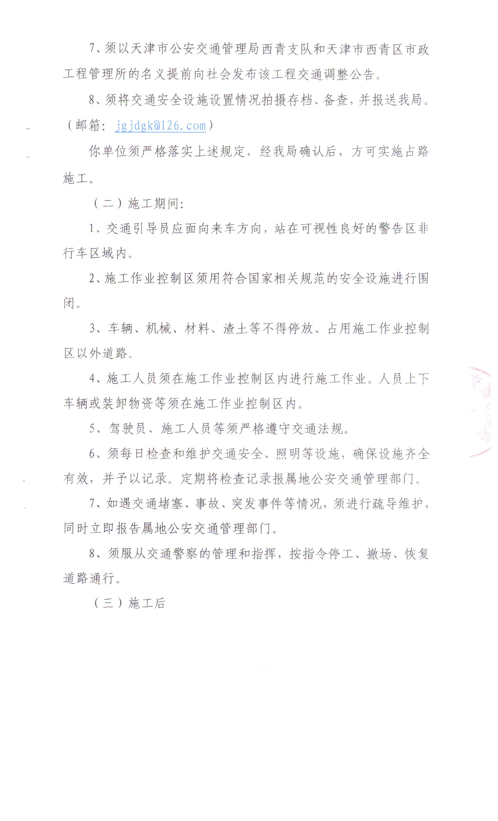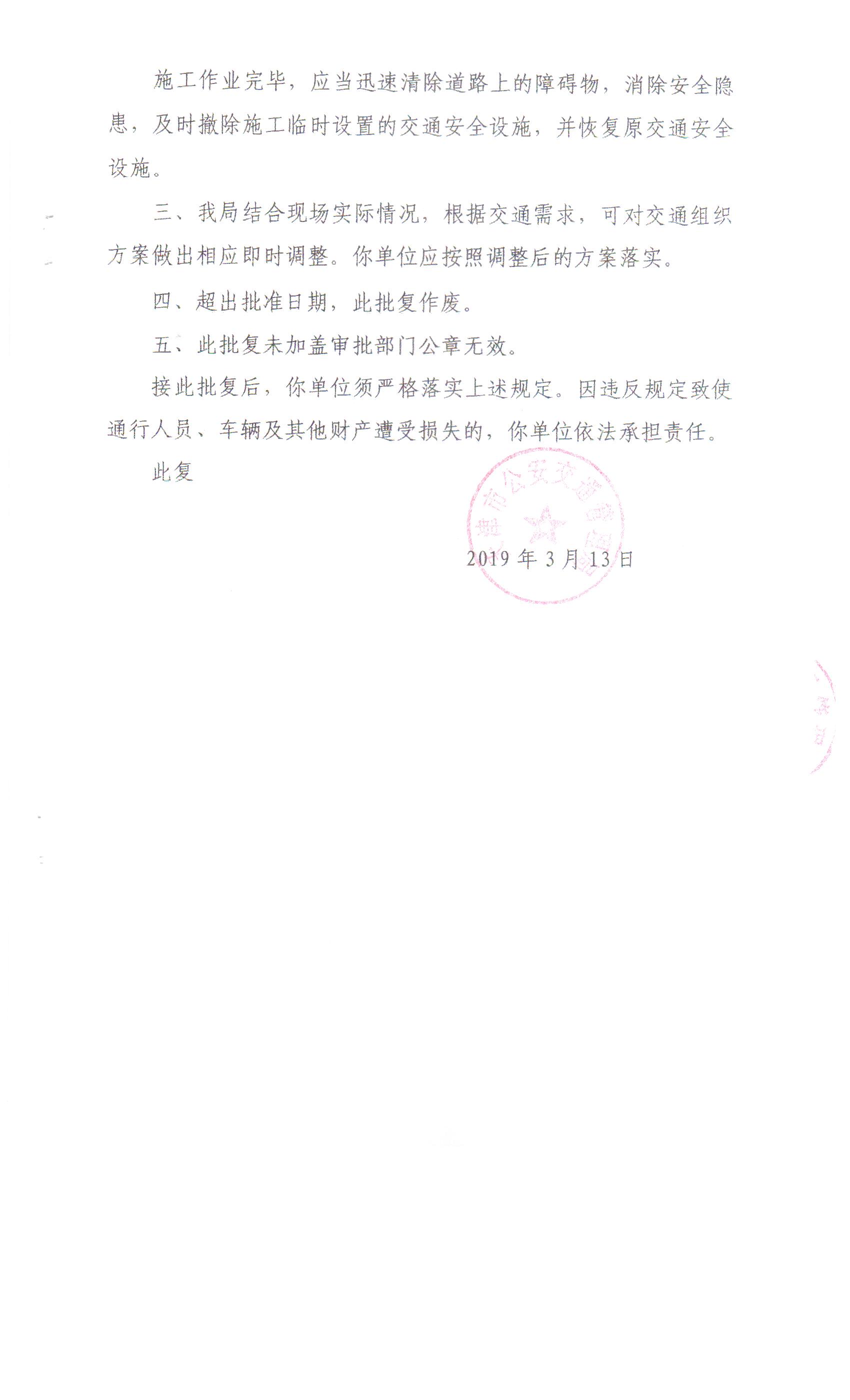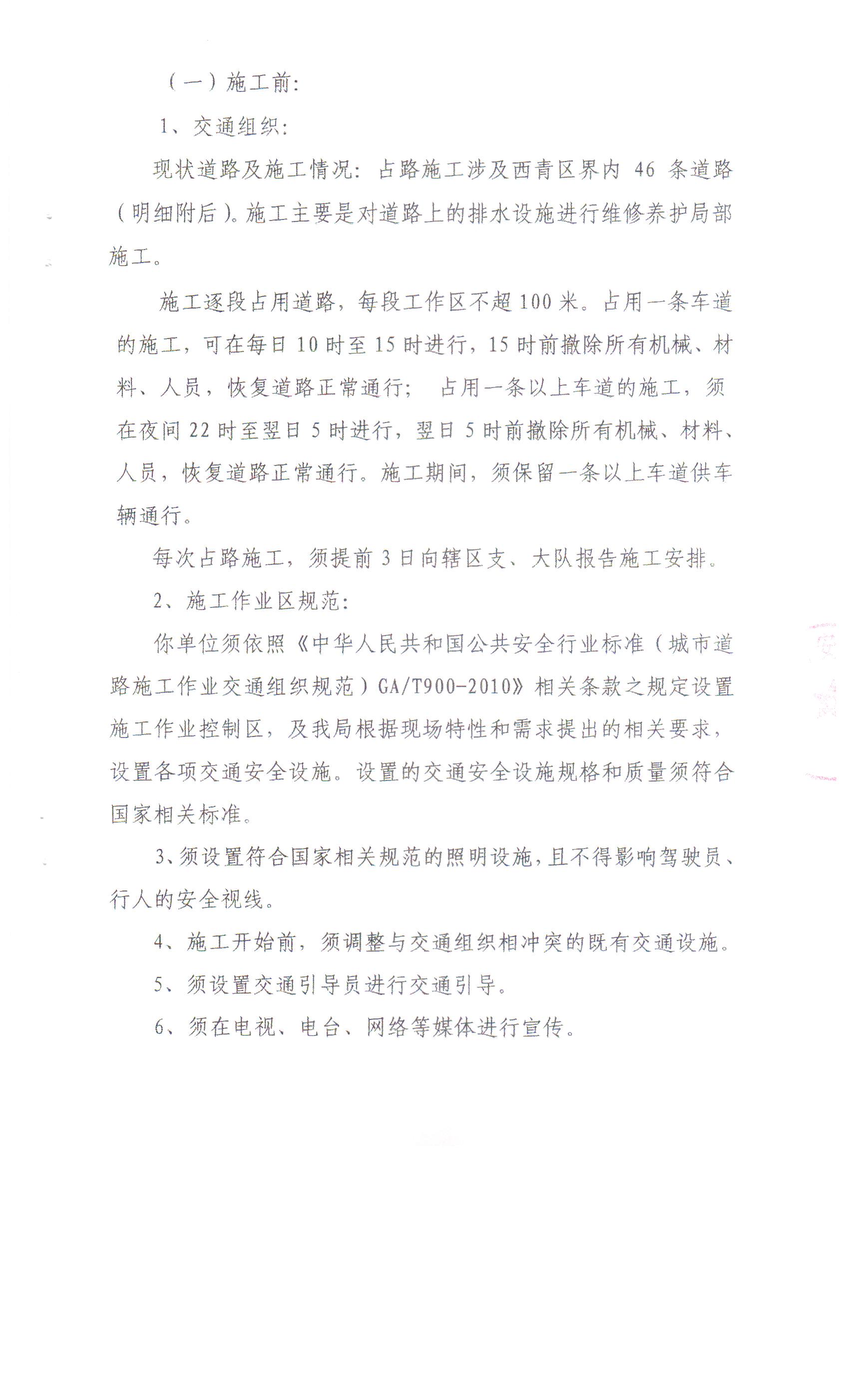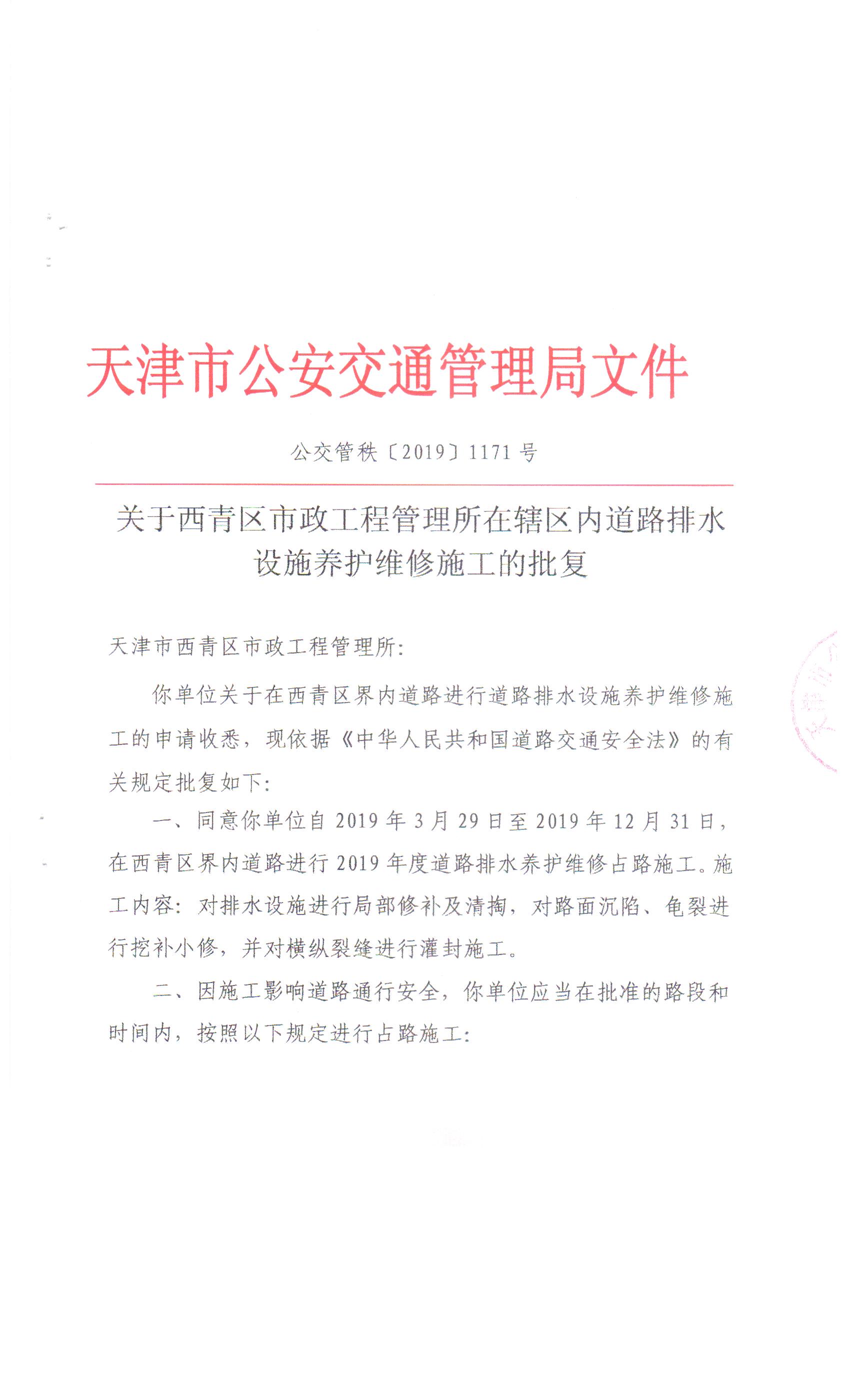 关于在线赌场 市政工程管理所所在辖区内道路排水设施养护维修施工的批复(新华道、柳口路等盲道修复)