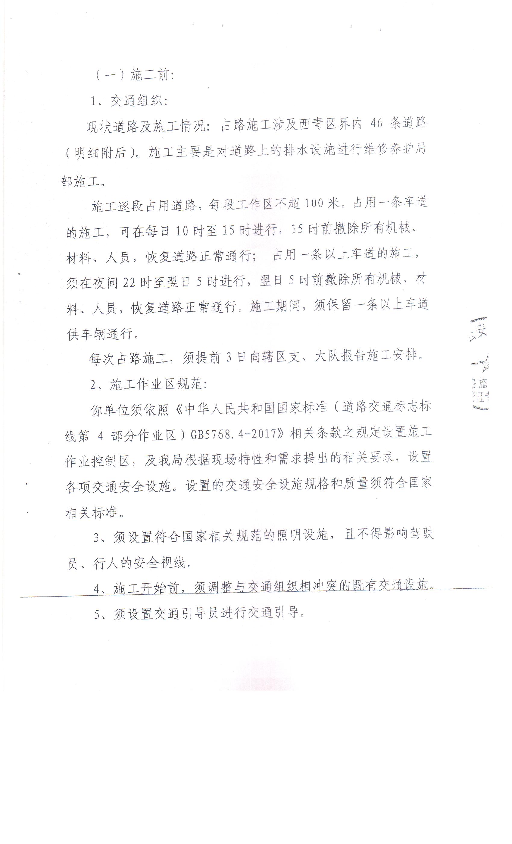 关于在线赌场 市政工程管理所所在辖区内道路排水设施养护维修施工的批复(泰佳道便道维修)