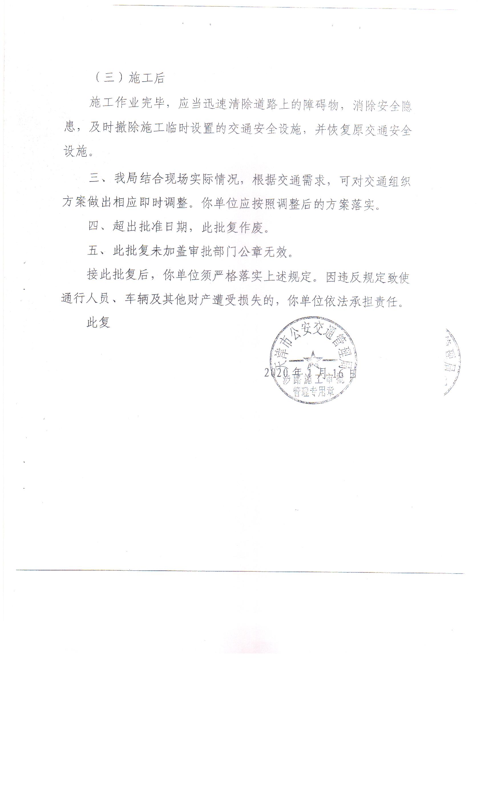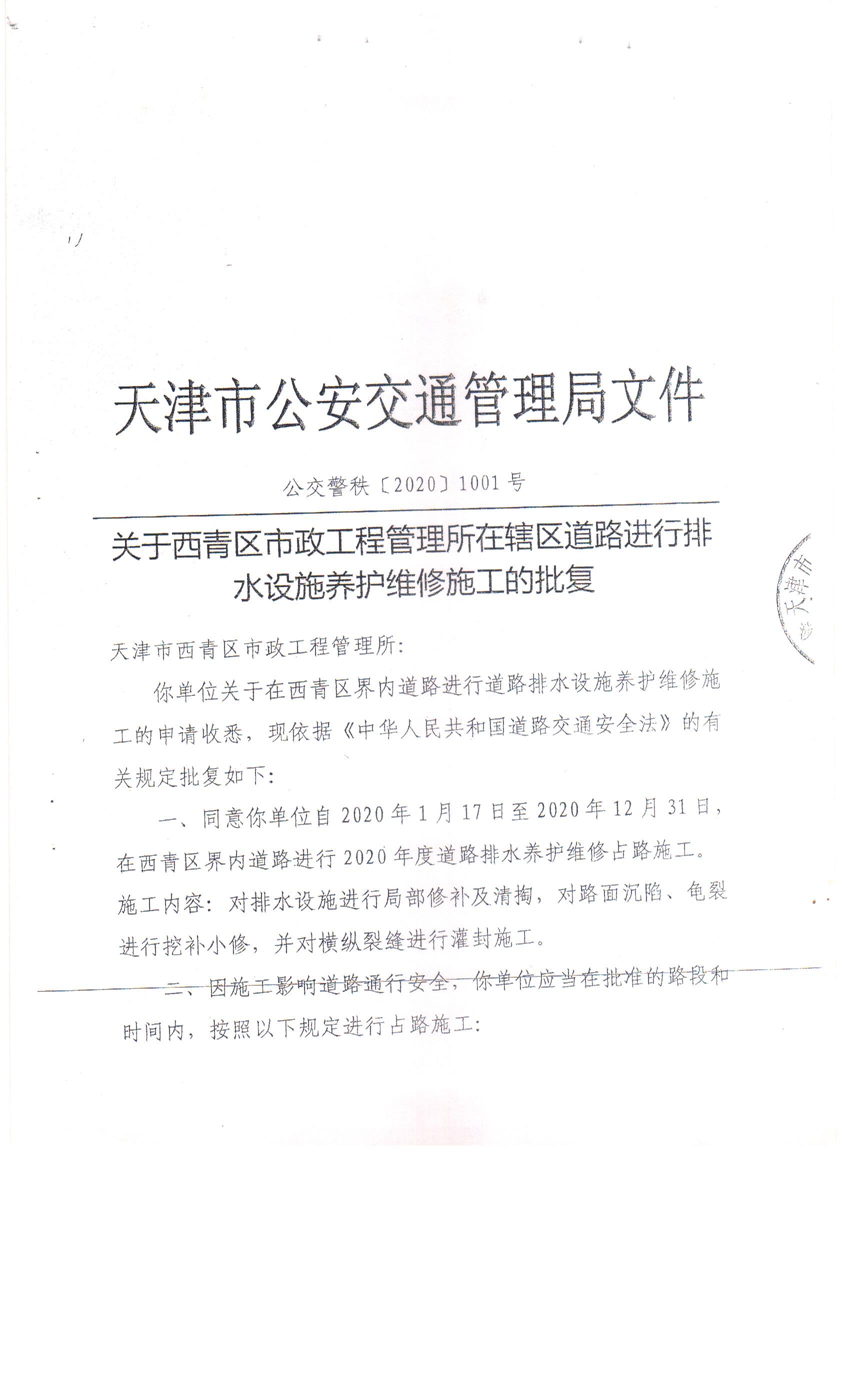 关于在线赌场 市政工程管理所所在辖区内道路排水设施养护维修施工的批复(昌凌路道路维修)