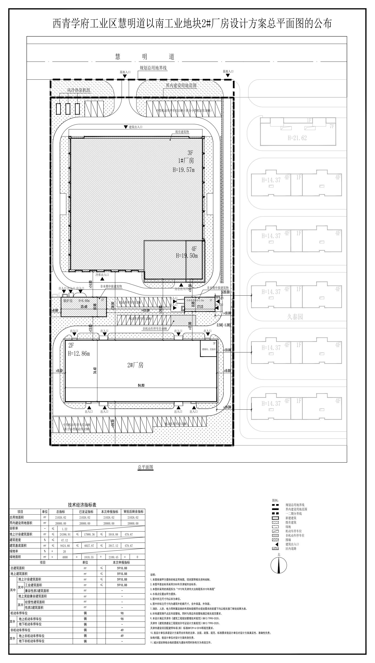 关于公布西青学府工业区慧明道以南工业地块2#厂房项目总平面图的通知