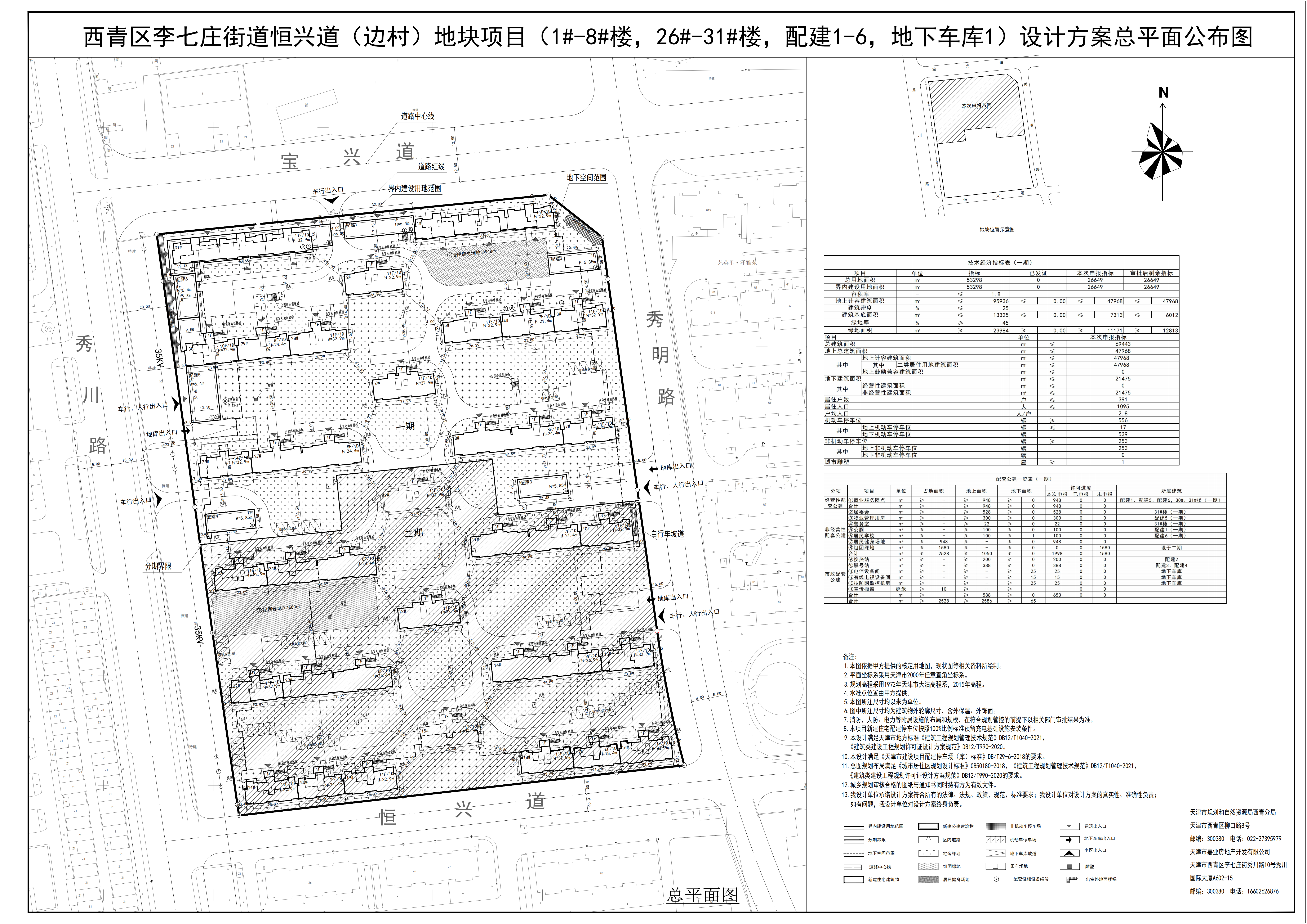 在线赌场 李七庄街恒兴道(边村)地块项目(1#-8#楼,26#-31#楼,配建1-6,地下车库1)规划方案总平面图已审批,审批时间为2025年5月20日,证书编号为2023西青建证0046。按照《中华人民共和国城乡规划法》《天津市城乡规划条例》的要求,现将上述工程总平面图予以公布。