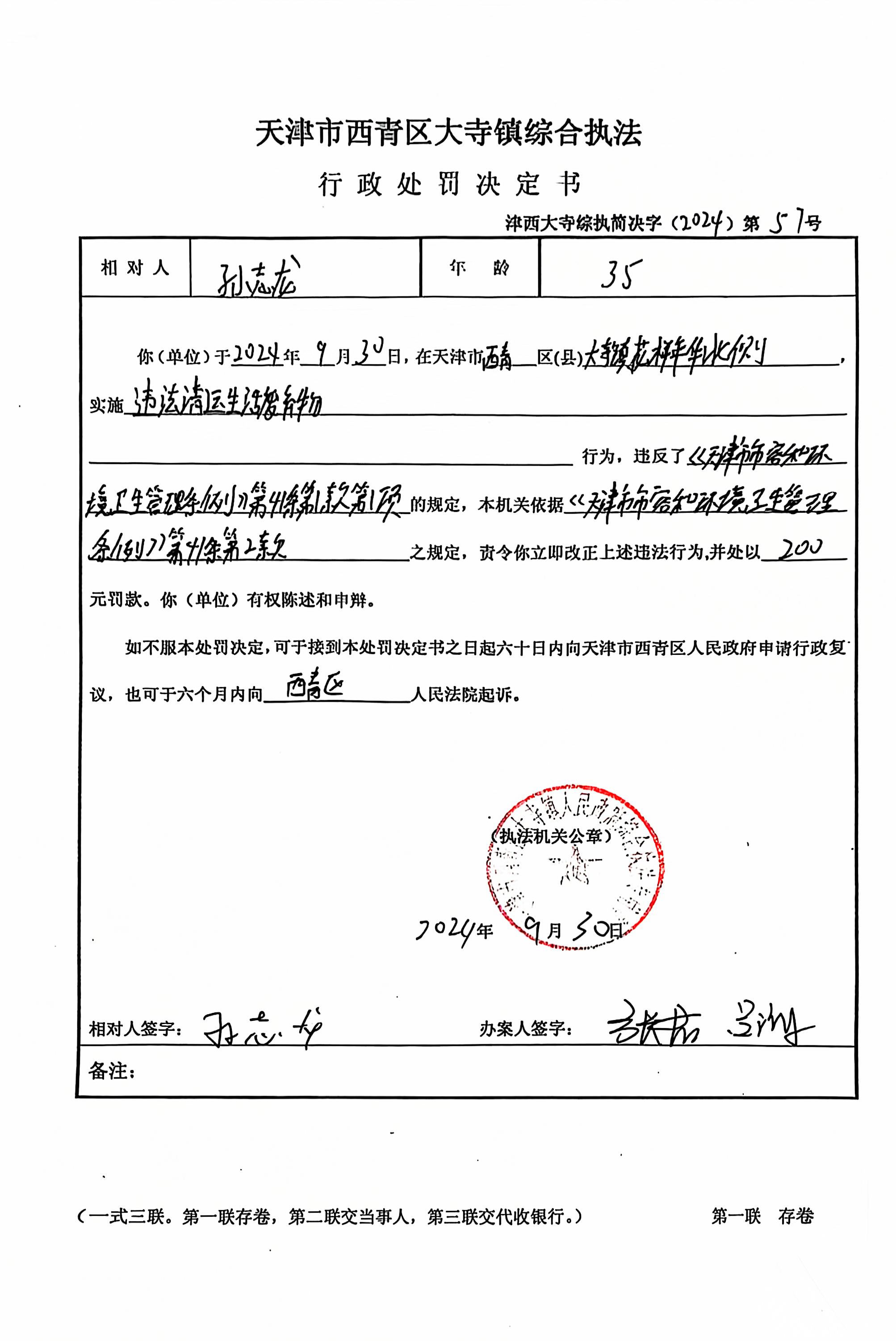天津市街镇综合执法文书