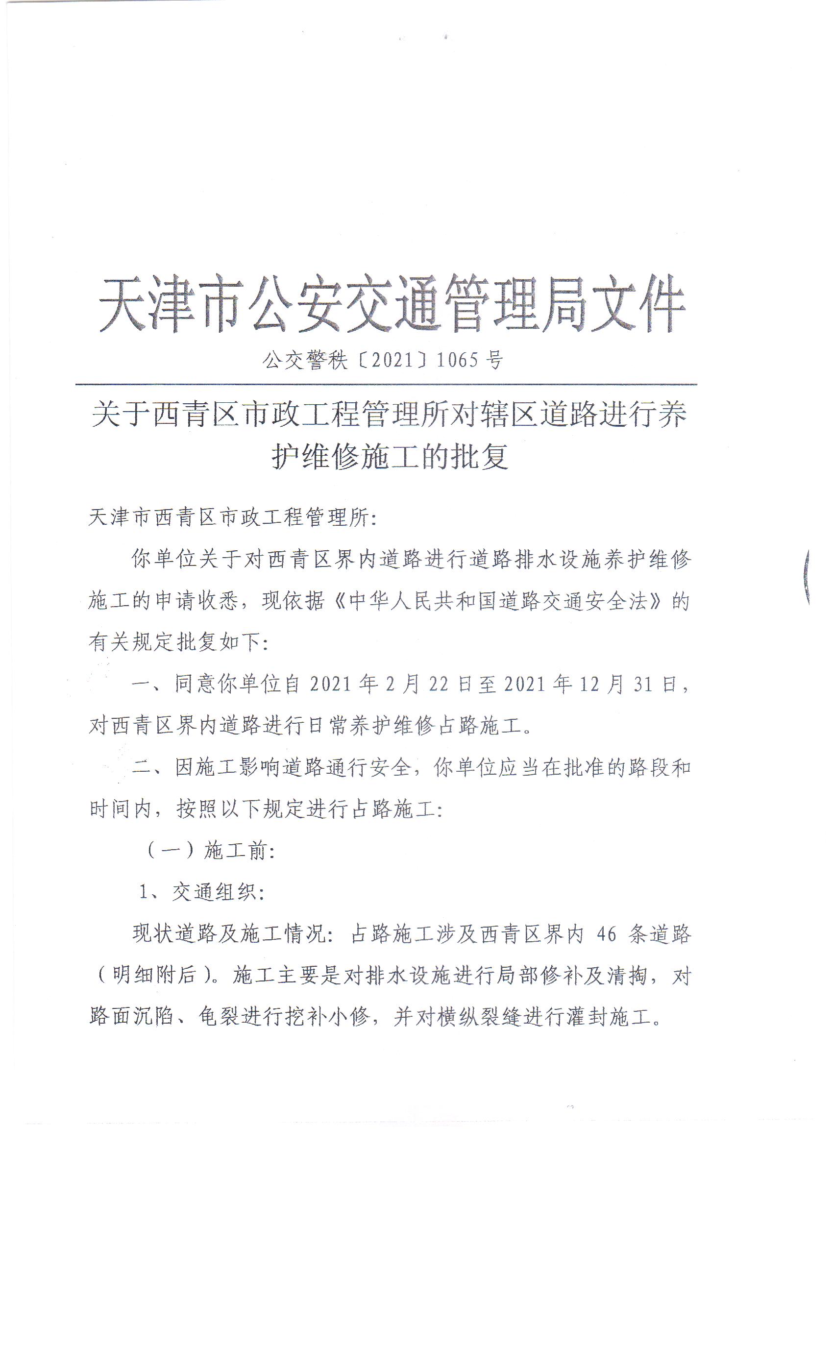 关于在线赌场 市政工程管理所所在辖区内道路排水设施养护维修施工的批复(西欢桥加固维修)