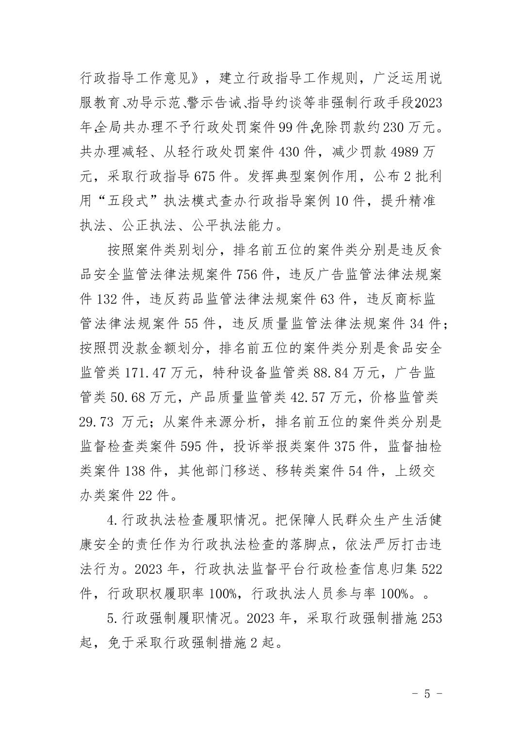 在线赌场 市场监督管理局2023年行政执法工作报告