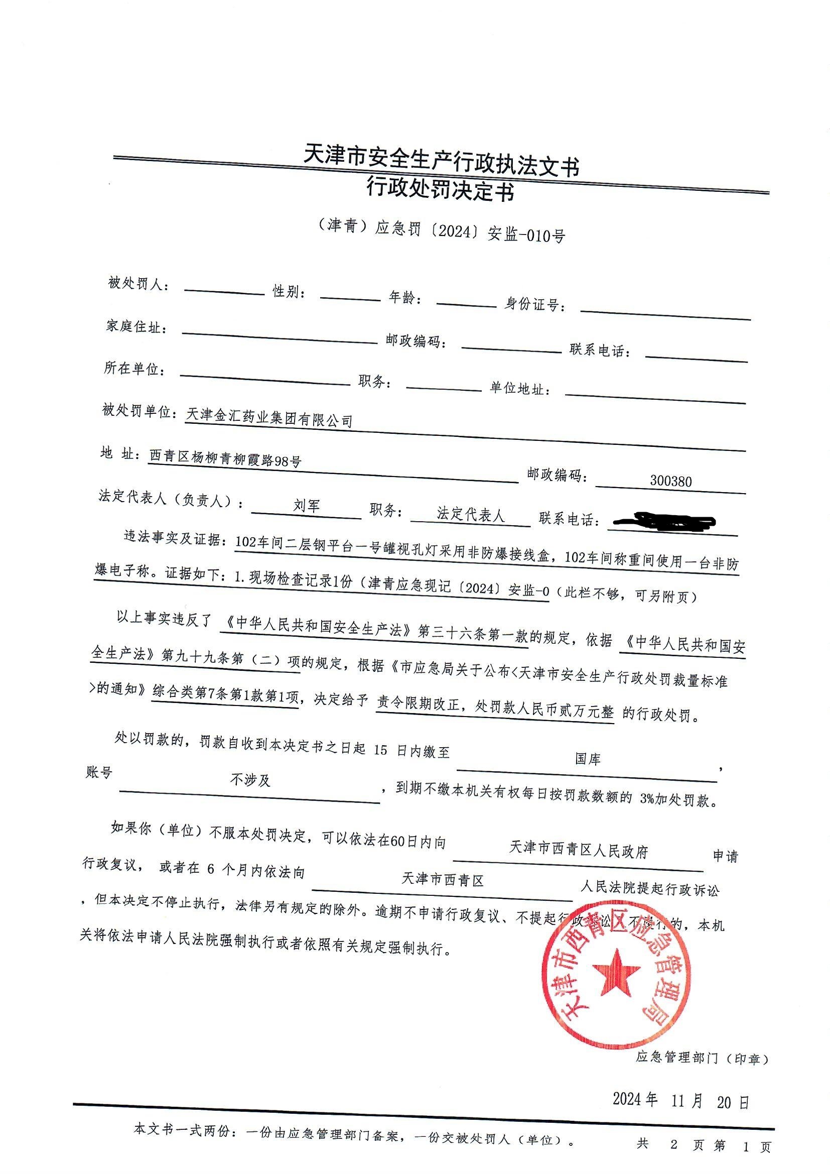 在线赌场 应急管理局 2024.11.20 (津青)应急罚﹝2024﹞安监-010号