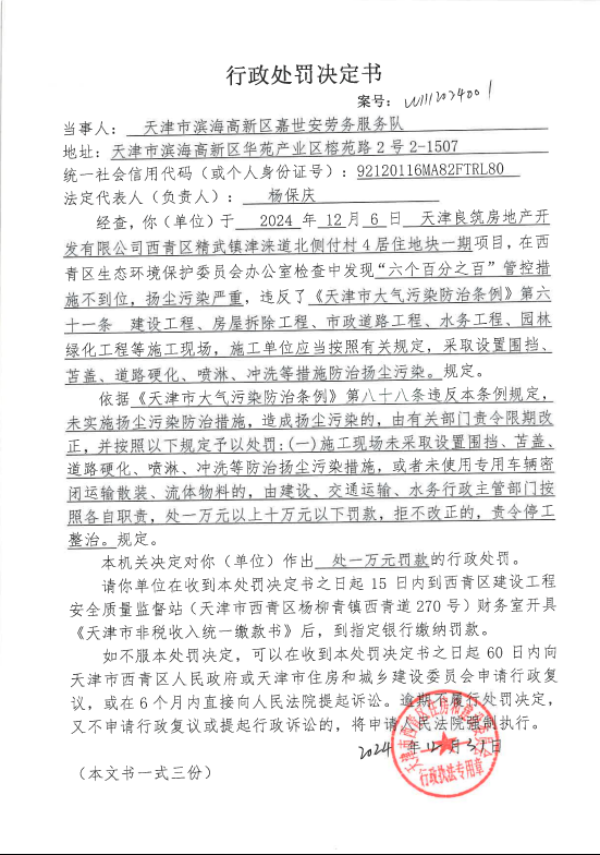 行政处罚决定书(W1112024001)
