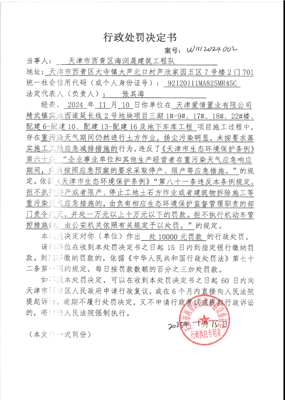 行政处罚决定书(W1112024002)